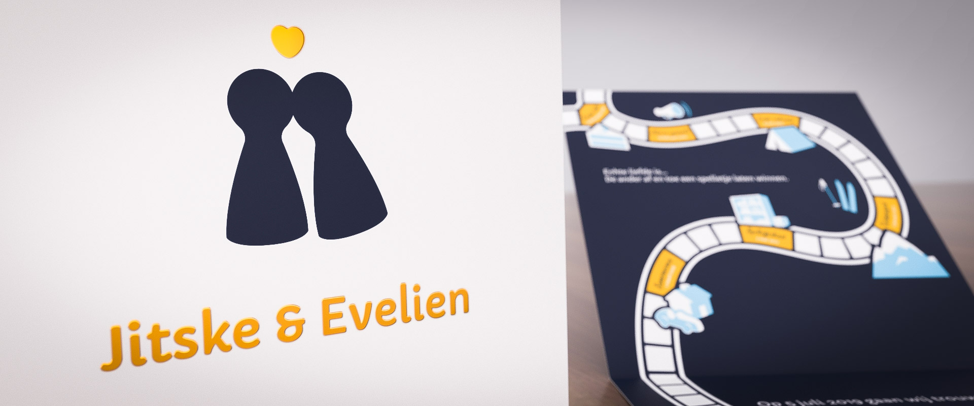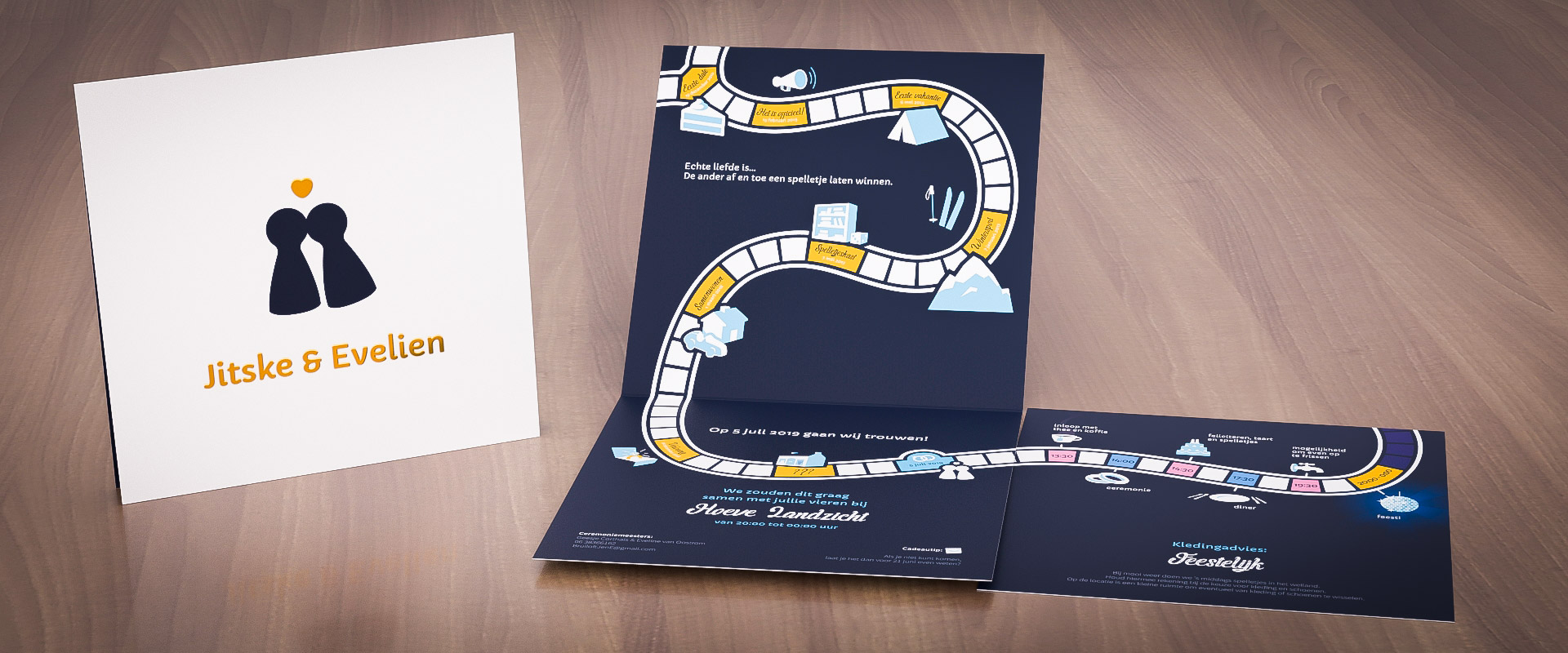 Misschien zijn jullie er op dit moment nog niet helemaal uit, net zoals Jitske en Evelien. Donkerblauw en goud waren hun lievelingskleuren, maar welk thema? Na wat speurwerk ontdekten we dat er één ding is waar iedereen meteen aan dacht bij Jitske en Evelien: bordspelletjes!